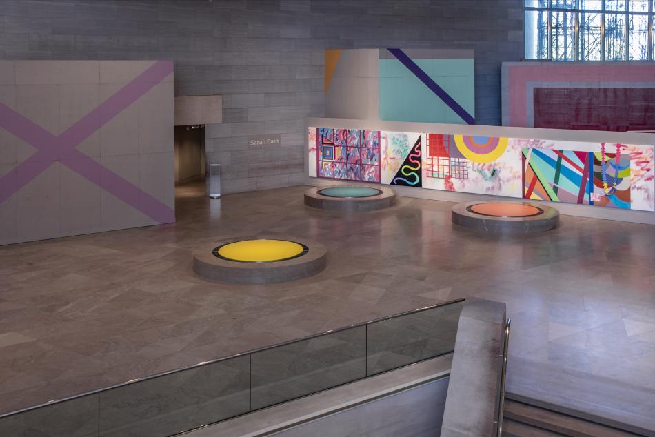 Kay Rosen's SORRY transformed the entryway of the East Building in an unexpected way from April 10, 2021, to March 27, 2022. Sarah Cain’s installation My favorite season is the fall of the patriarchy enlivened the Atrium from June 18 to October 3, 2021. Avish Khebrehzadeh brought her poetic works Tree of Life in Blue and Seven Silent Songs to the East Building from June 18, 2021, to February 27, 2022.