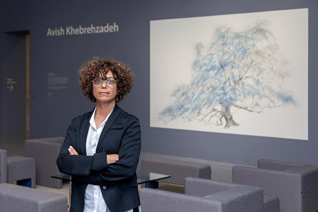Avish Khebrehzadeh with Tree of Life in Blue at the National Gallery, 2021.
