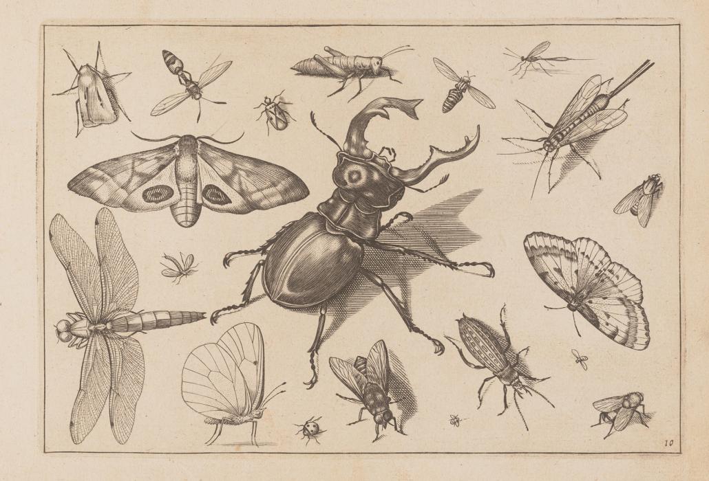 Hoefnagel’s study allows us to take our time observing a creature with a brief lifespan—male stag beetles live for only a few weeks. Other artists, like printmaker Claes Jansz Visscher, copied this image of the beetle, sharing it with more naturalists and collectors.