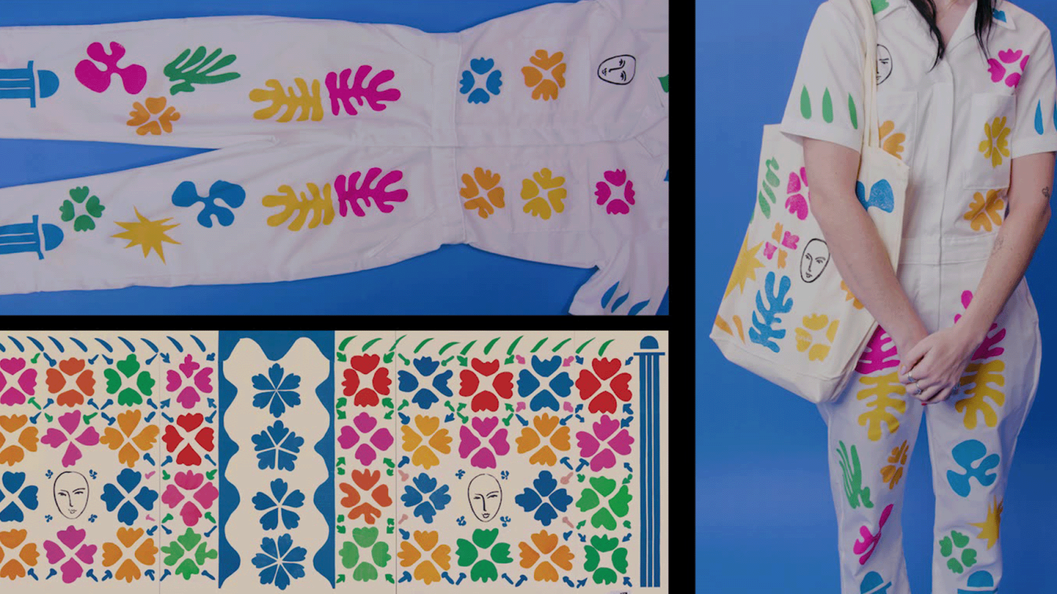 Henri Matisse’s works offer more than meets the eye. His daring body of work spanned more than five decades and made him a leading figure in modern art. As his work grew greater in scale and ambition towards the end of his life, Matisse embraced his cutout technique, which he first explored in designing costumes and scenery for the Ballets Russes in 1919. By cutting sheets of paper painted with meticulously mixed hues, Matisse “painted with scissors,” which allowed him to continue creating art despite his failing health once he reached his early 70s. Watch and learn how to make fashion stamps on fabric inspired by Matisse’s 1953 work Large Decoration with Masks.