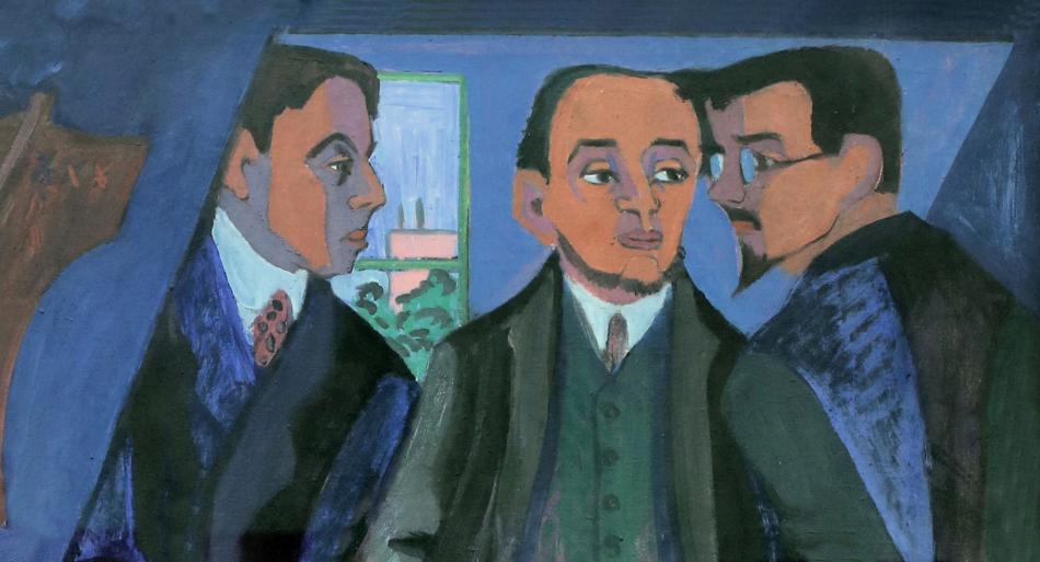 Banner image: A detail of painting of members of Die Brücke (the Bridge). Ernst Ludwig Kirchner, Eine Künstlergemeinschaft (Die Maler der Brucke) [An Artists’ Group (The Painters of the Brücke)], 1926/7, oil on canvas, Museum Ludwig, Cologne.