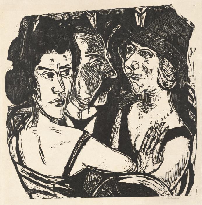 Max Beckmann, Group Portrait, Eden Bar (Gruppenbildnis Edenbar), 1923, woodcut on heavy Japan paper, Rosenwald Collection, 1964.8.319
