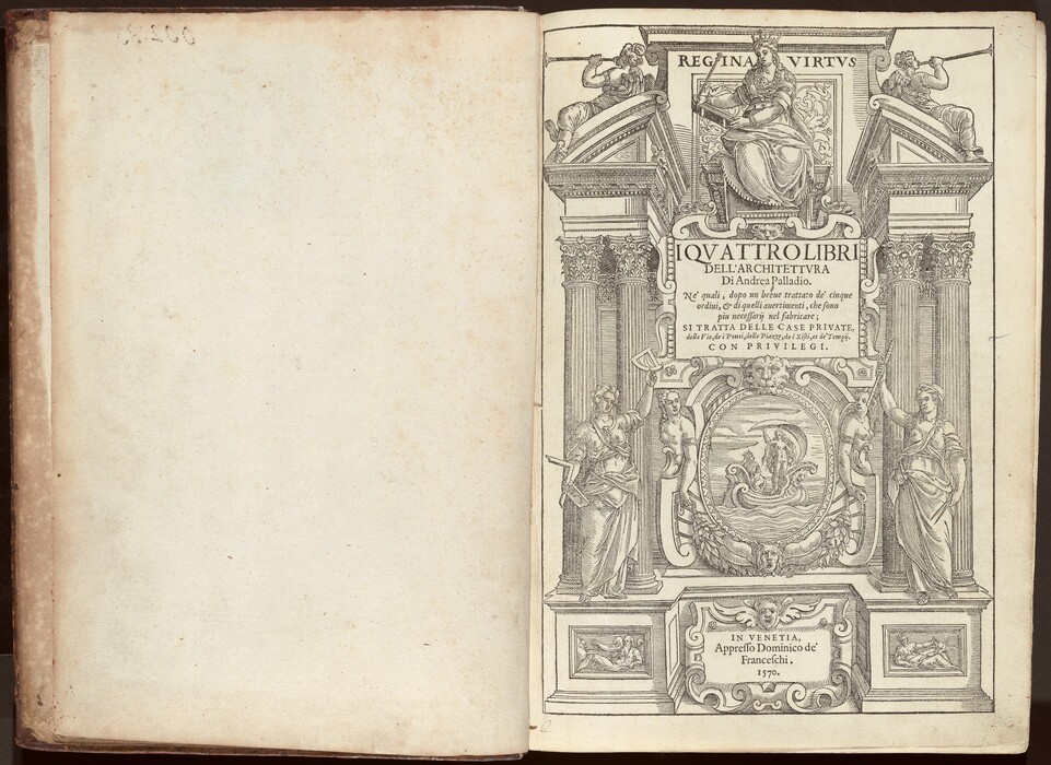 Andrea Palladio · published 1570 · 4 parts in 1 vol: ill: woodcuts within text (156 full-page) · Accession ID 1983.49.42