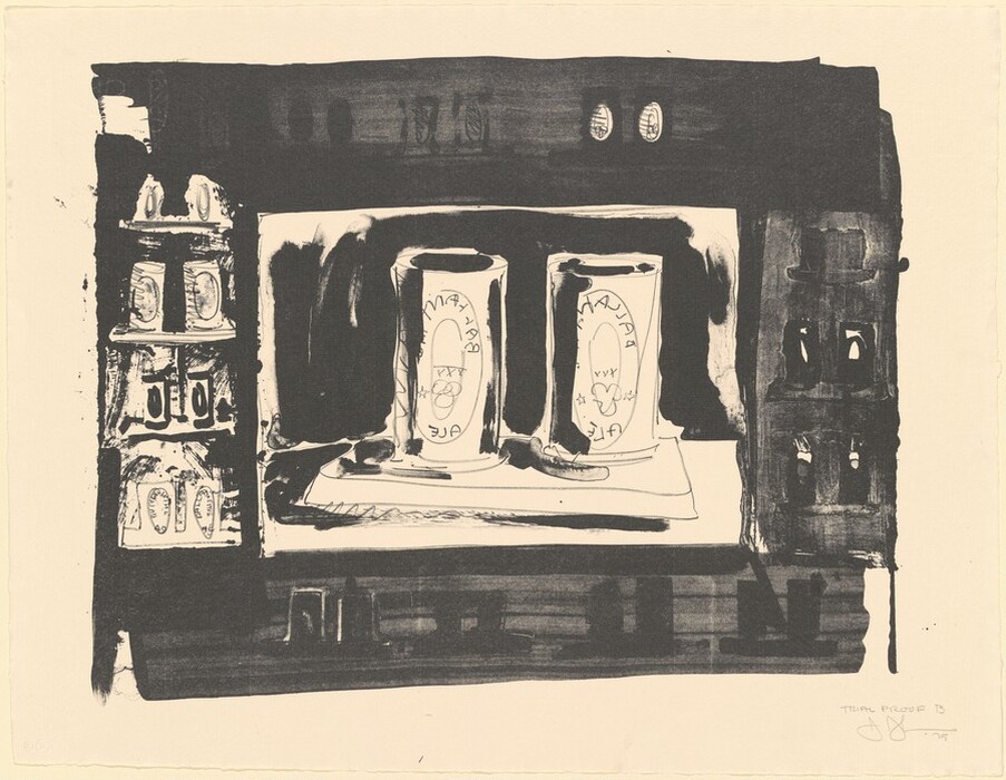 Jasper Johns, Daniel Freeman, Barbara Thomason, Serge Lozingot, Gemini G.E.L. · 1975 · lithograph in black on Richard de Bas handmade paper [trial proof] · Accession ID 2008.136.152