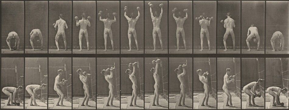 Plate Number 323. Lifting and letting down two 50-lb. dumbbells