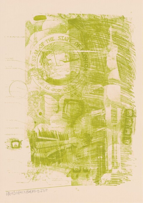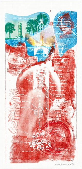 Robert Rauschenberg, Kenneth Tyler, Charles Ritt, Stuart Henderson, Ron Adams, Ron McPherson, Robert Petersen, Andrew Vlady, Timothy Isham, Gemini G.E.L. · 1969 · color lithograph and screenprint on Special Arjomari wove paper · Accession ID 1981.5.74