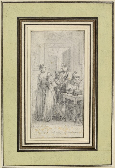 Charles-Nicolas Cochin II · c. 1757 · graphite on wove(?) paper with a border line in pen and brown ink, laid down · Accession ID 1942.9.740