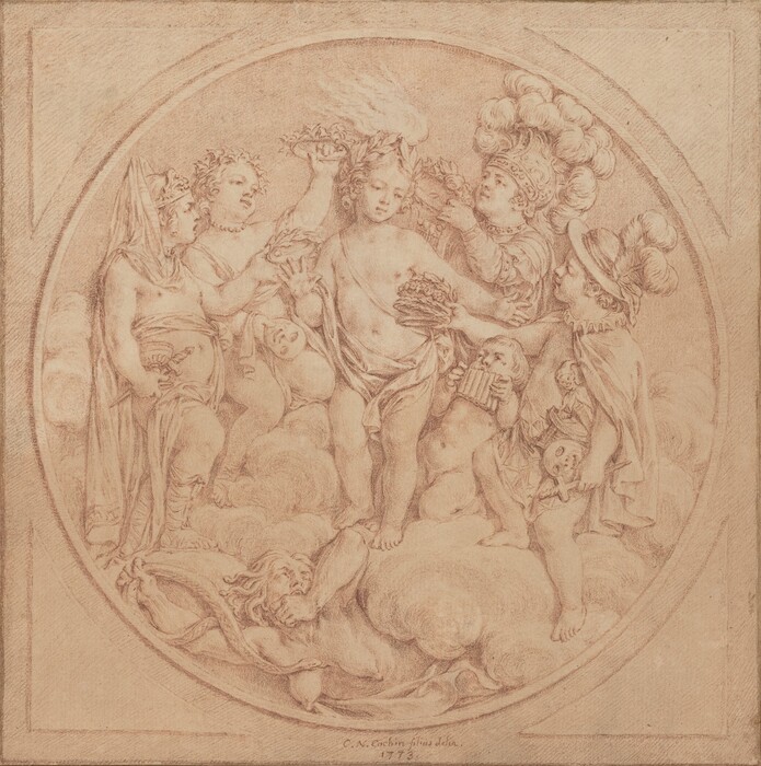 Charles-Nicolas Cochin II · 1774/1775 · red chalk with touches of black chalk on laid paper, laid down, with border lines drawn by the artist · Accession ID 1987.29.3