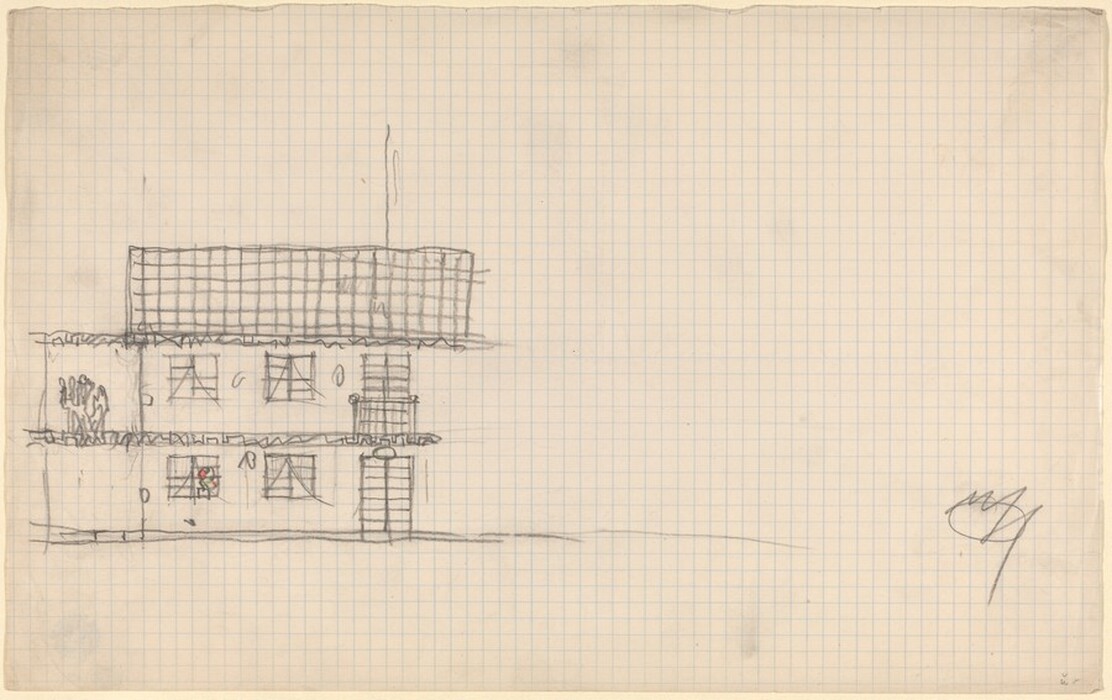 Josef Hoffmann · · graphite touched with red and green (crayon?) on blue-lined paper · Accession ID 1971.41.14