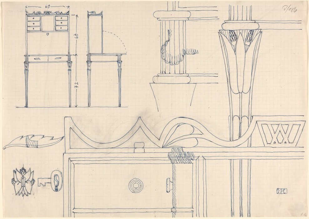 Josef Hoffmann · · graphite, black ink, and gold (ink?) on blue-lined paper · Accession ID 1971.41.37