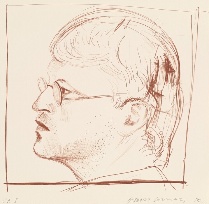 David Hockney, Claudio Stickar, Robert Meyer, Gemini G.E.L. · started 1980, published 1995 · lithograph in brown on Arches Cover wove paper [special proof] · Accession ID 2016.146.23