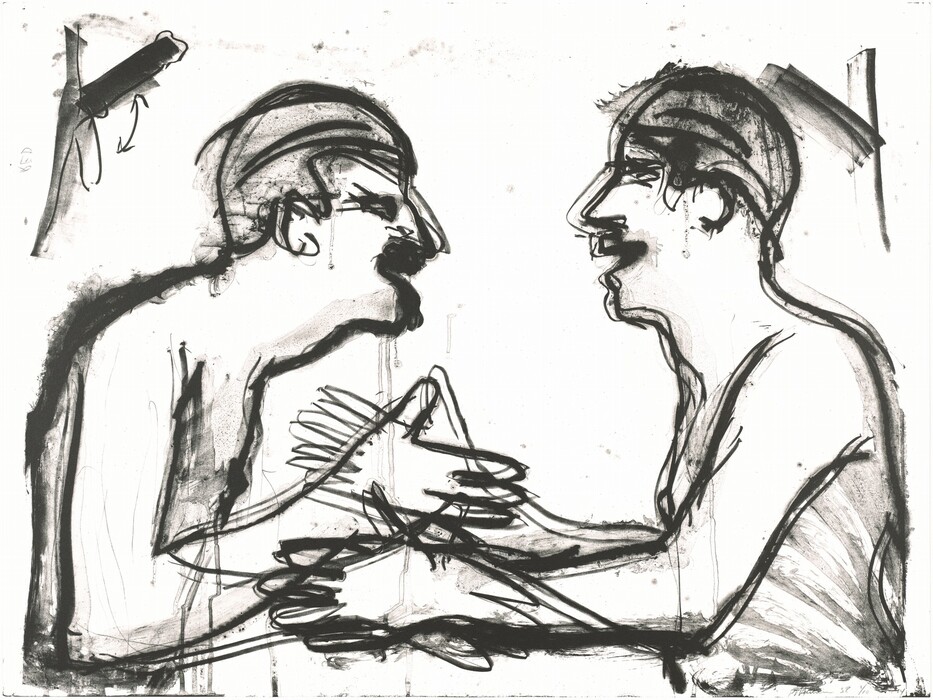 John Baldessari, Jennifer Azzarone, Stanley Baden, James Reid, Mark Schultz, Claudio Stickar, Laurie Switzer, Stephanie Wagner, Gemini G.E.L. · started 1991, published 1994 · color lithograph and screenprint on two sheets of Arches 88 wove paper [special proof] · Accession ID 2001.74.2.a-b