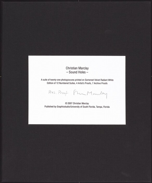 Christian Marclay, Graphicstudio, Sound Holes, 2007, portfolio of twenty-one photogravures in black on Somerset Velvet Radiant White paper, Gift of Graphicstudio/University of South Florida, 2010.99.2.1-21