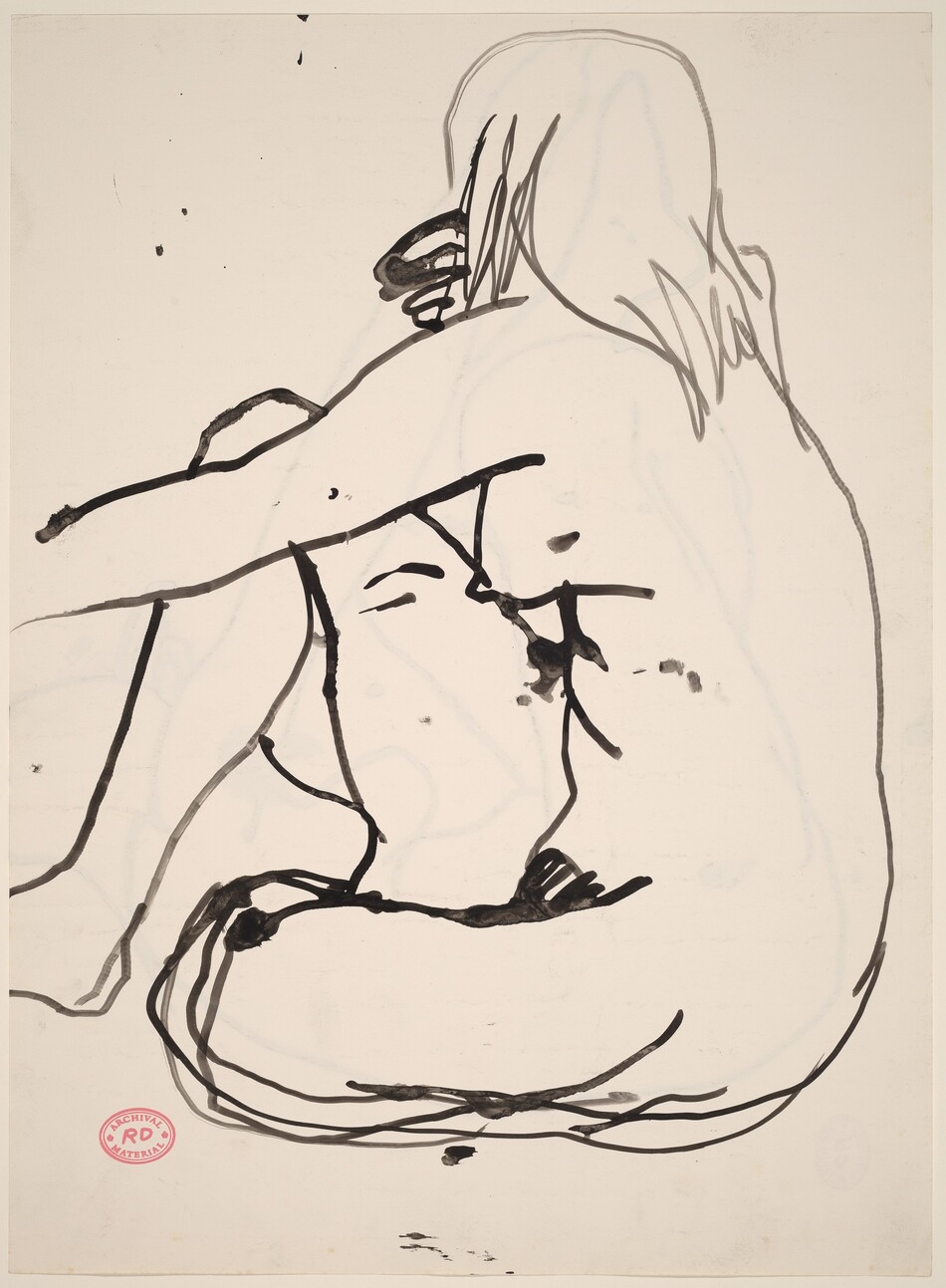 Untitled [seated female nude with left arm resting across legs] [recto]