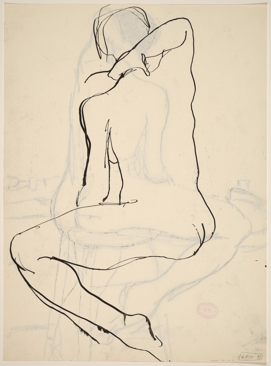 Untitled [back view of a nude holding her neck with her right hand] [verso]