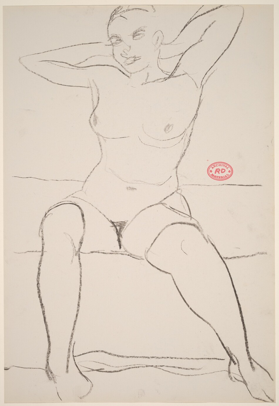 Untitled [seated female nude with hands behind head]