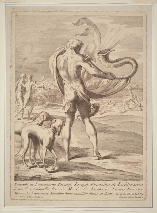 Anton Maria Zanetti I, Giovanni Antonio Faldoni, Giovanni Battista Tiepolo, Carlo Orsolini, Andrea Zucchi · · chiaroscuro woodcut in green and black on laid paper · Accession ID 2002.26.1.3