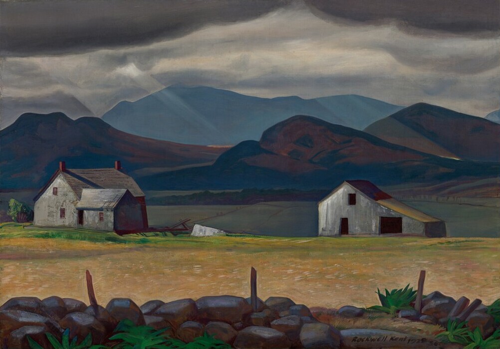 By the onset of World War II, Kent had largely disengaged from the New York art world and instead focused his energies on a number of progressive political causes, including labor rights and preventing the spread of fascism in Europe. Though he never joined the communist party, his support of leftist causes made him a target of suspicion by the State Department, which revoked his passport after his first visit to Moscow in 1950 (though Kent successfully sued to have it reinstated). As his artistic reputation declined at home and his work fell out of favor, Kent found new popularity in the Soviet Union, where his works were exhibited frequently in the 1950s. In 1960 he donated 80 paintings and 800 prints and drawings to the people of the Soviet Union, and in 1967 he was awarded the Lenin Peace Prize. Kent died of a heart attack in 1971 and was buried on the grounds of Asgard, his farm in New York’s Adirondack Mountains.