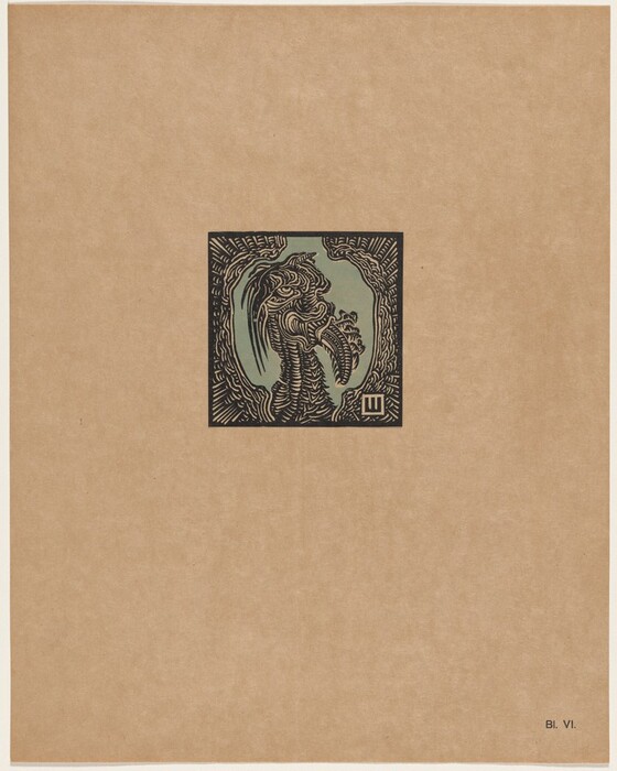 Gustav Wolf, Verlag der Quelle, Bild I, 1912, woodcut in brown and black on tan China paper mounted on light brown card, Gift of Ingrid Rose in memory of her husband Milton Rose, 2018.37.11.1
