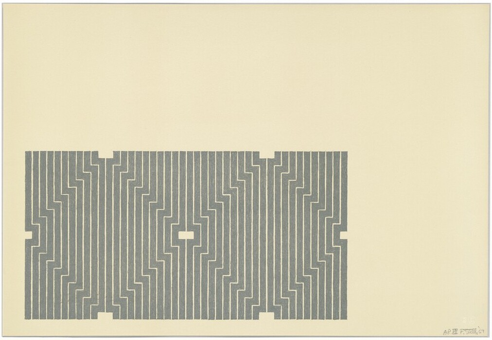 Frank Stella, Daniel Freeman, Robert Petersen, Gemini G.E.L. · 1969 · lithograph in gray and silver on Arches wove paper · Accession ID 1991.74.200