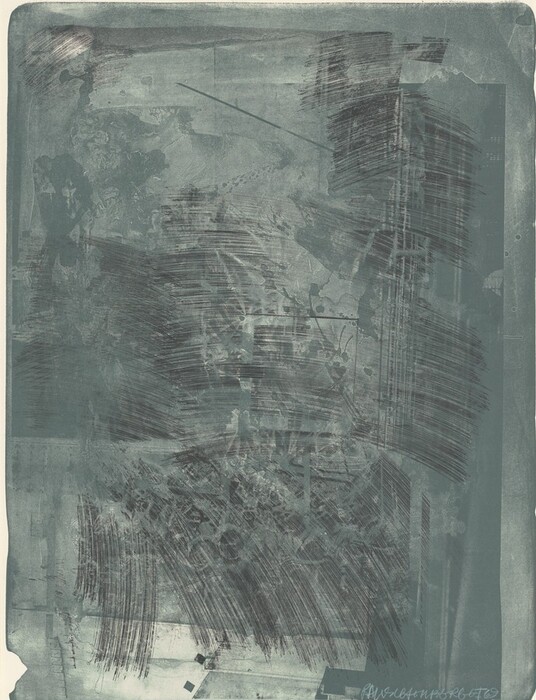 Robert Rauschenberg, Kenneth Tyler, Charles Ritt, Stuart Henderson, Ron Adams, Ron McPherson, Robert Petersen, Andrew Vlady, Timothy Isham, Gemini G.E.L. · 1969 · color lithograph and screenprint on Special Arjomari wove paper · Accession ID 1981.5.74