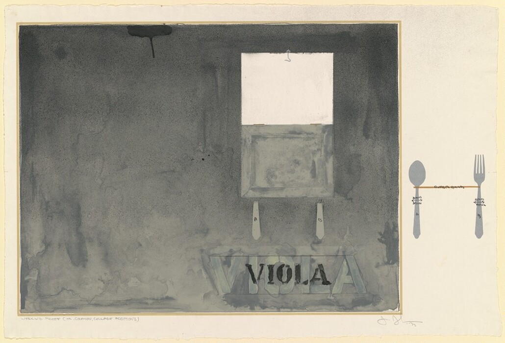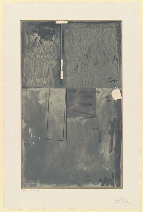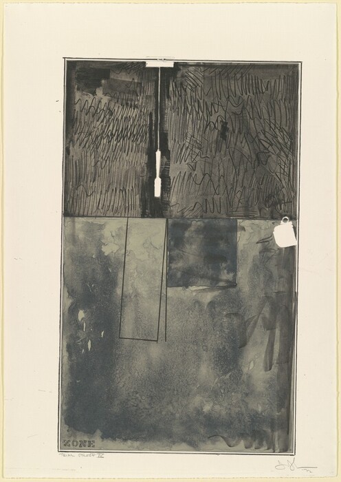 Jasper Johns, Serge Lozingot, Daniel Freeman, Chuck DeLong, Gemini G.E.L. · 1972 · lithograph in black with crayon, chalk, and graphite on wove paper [working proof] · Accession ID 2008.27.20