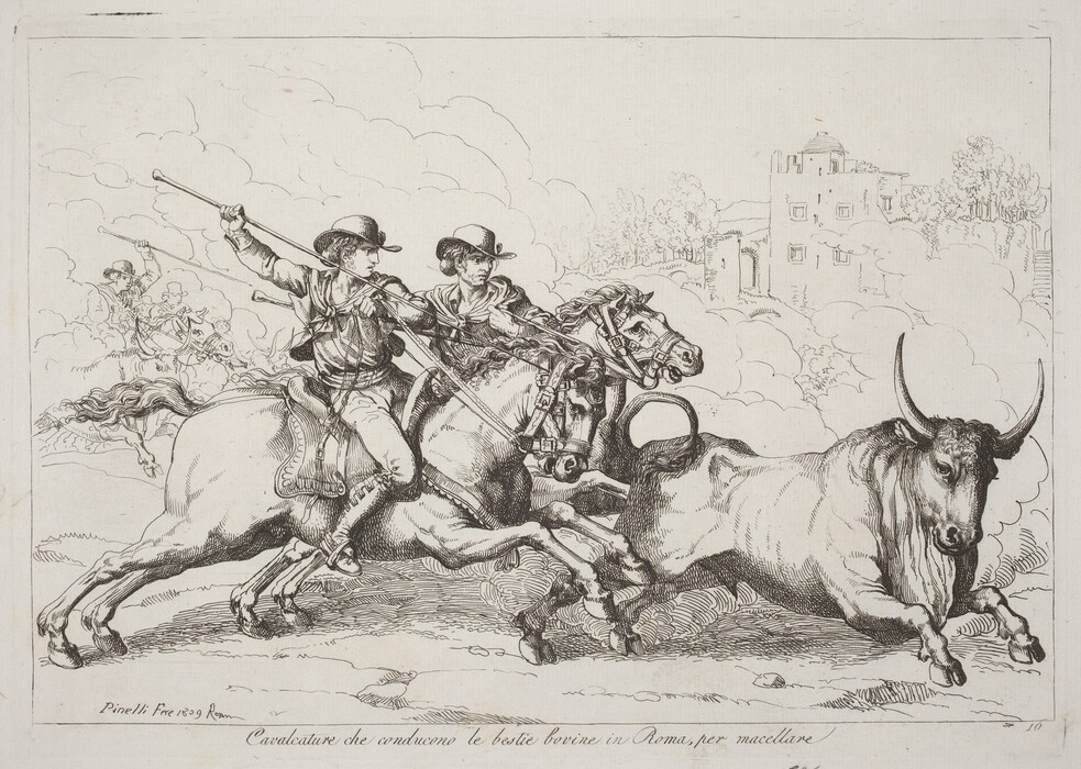 Cavalcature che conducono le bestie bovine in Roma, per macellare (Cattle Driven to the Slaughter in Rome) (Plate 16)