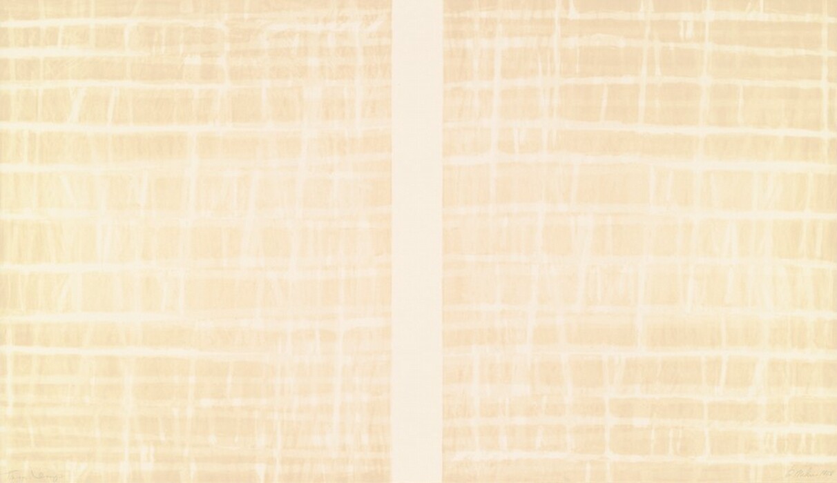 Eleanore Mikus, Tamarind Institute · 1968 · lithograph (stone) in light yellow on one of two hinged sheets of Magnani Italia paper · Accession ID 1984.34.297.a
