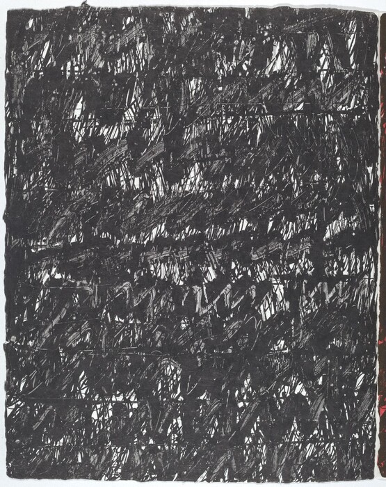Eleanore Mikus, Tamarind Institute · 1968 · lithograph (stone) in black on one of two hinged sheets of white Nacre paper · Accession ID 1984.34.305.a