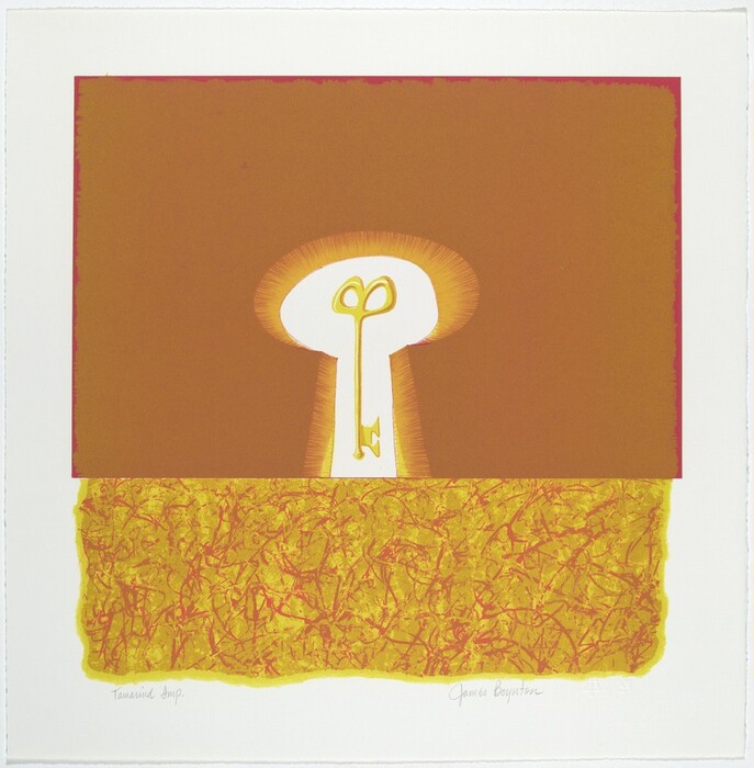 James Boynton, Tamarind Institute · 1967 · lithograph (aluminum and stone) in light blue, yellow-ochre and dark violet on Rives paper · Accession ID 1983.18.327