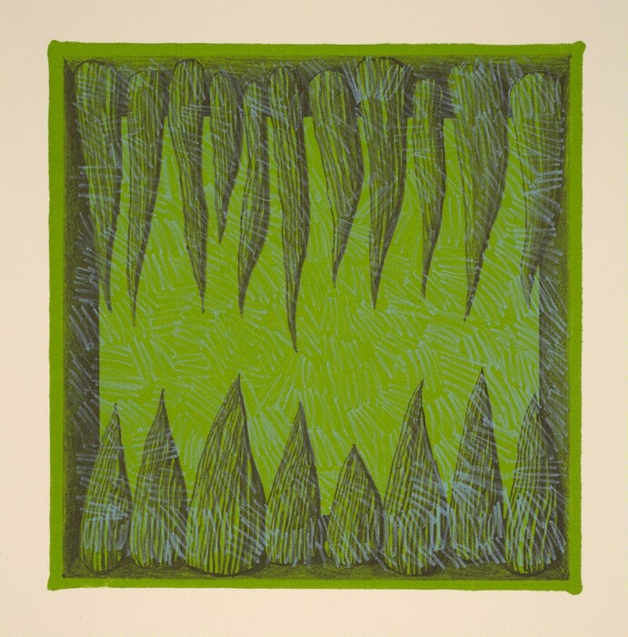James Boynton, Tamarind Institute · 1967 · lithograph (aluminum and stone) in green, dark brown and blue on German Etching paper · Accession ID 1983.18.318