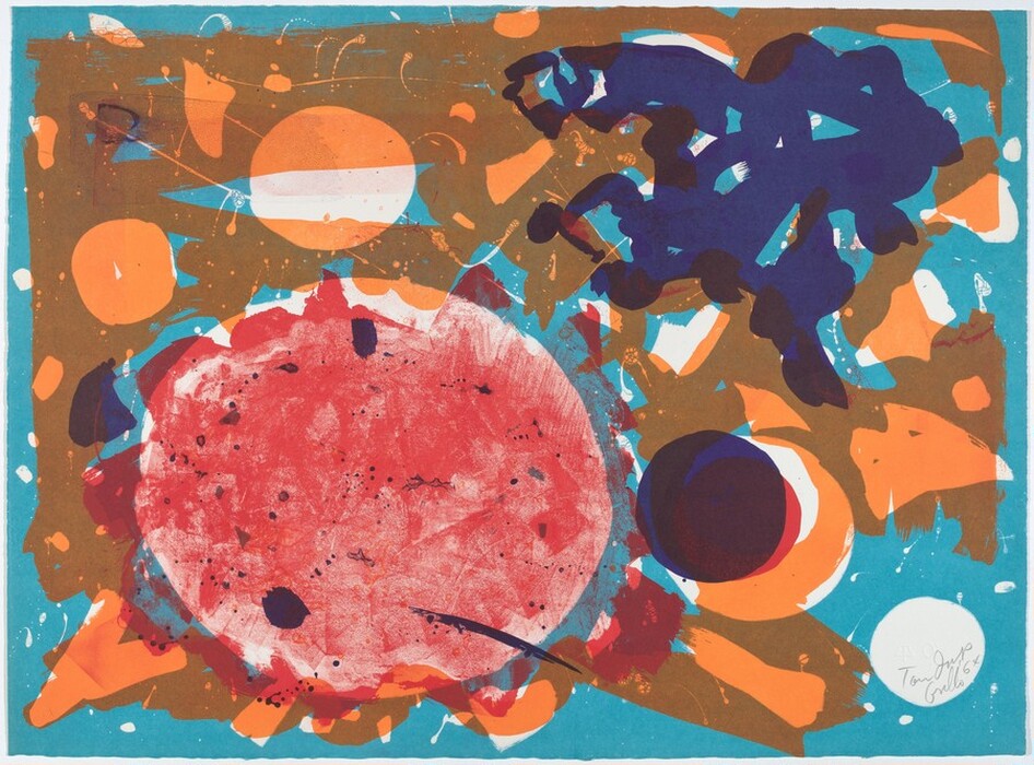 John Grillo, Tamarind Institute · 1964 · lithograph (stone and zinc) in yellow and brown on white Arches paper · Accession ID 1983.18.560.1