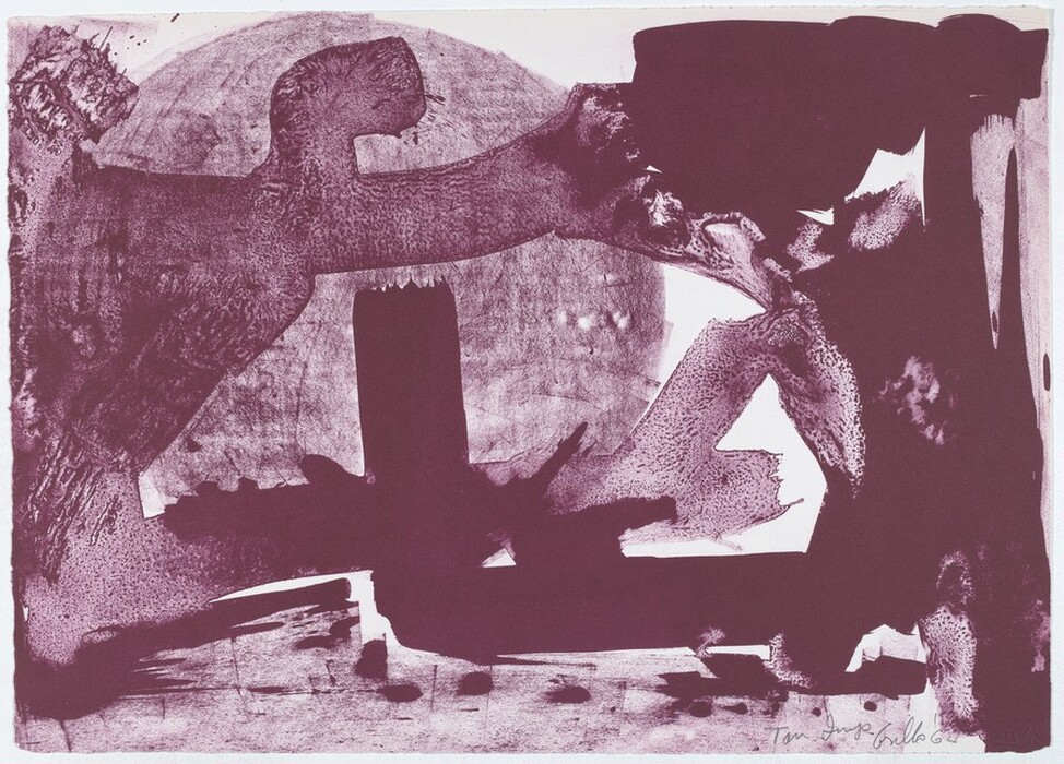 John Grillo, Tamarind Institute · 1964 · lithograph (zinc) in black and violet on white Arches paper · Accession ID 1983.18.560.10