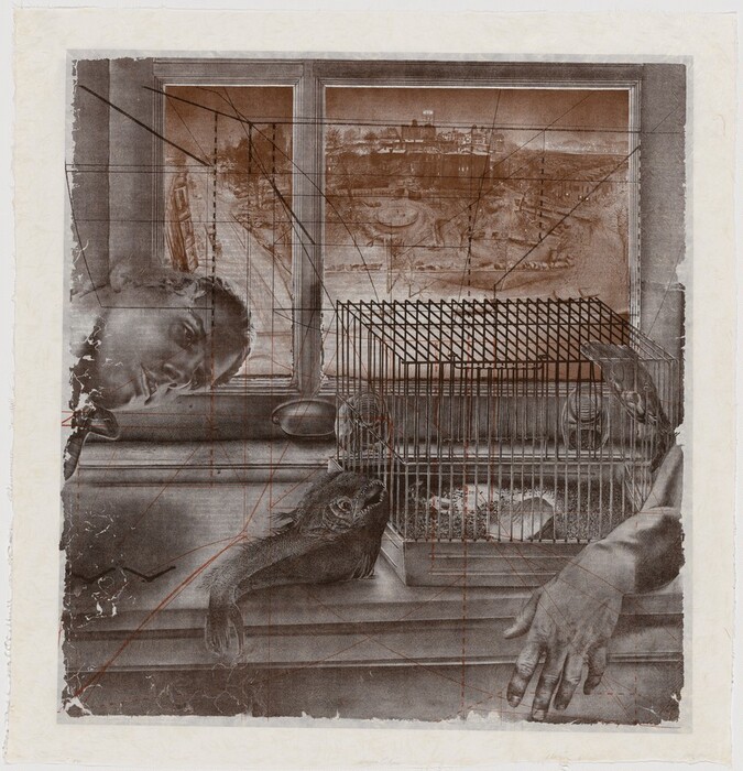 Anthony Gorny · 1976/1980 · lithograph in black, brown, and red on two sheets of japan paper attached with clear tape · Accession ID 1991.116.39
