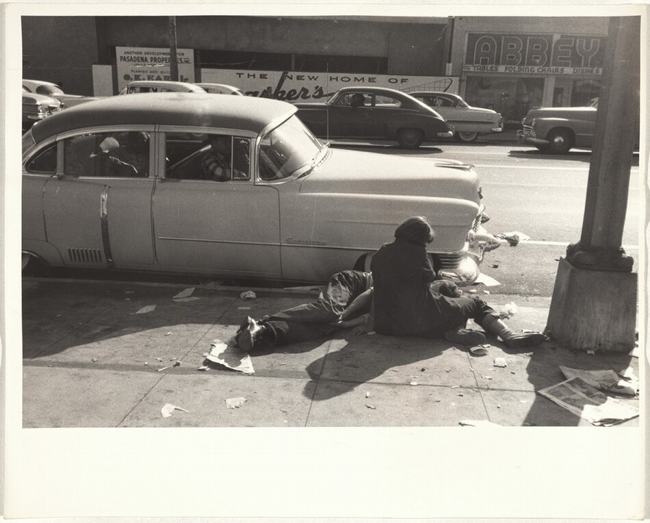 Man reading in automobile--Los Angeles