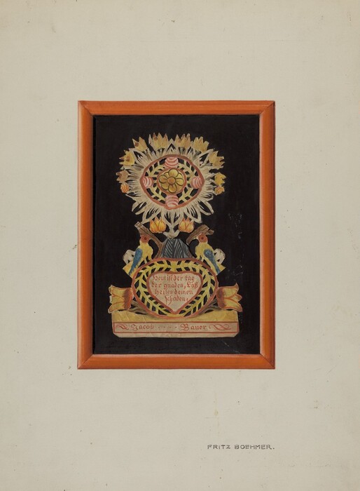 Memorial-Pennsylvania Fractur and Cut-out Commemorating Jacob Bauer