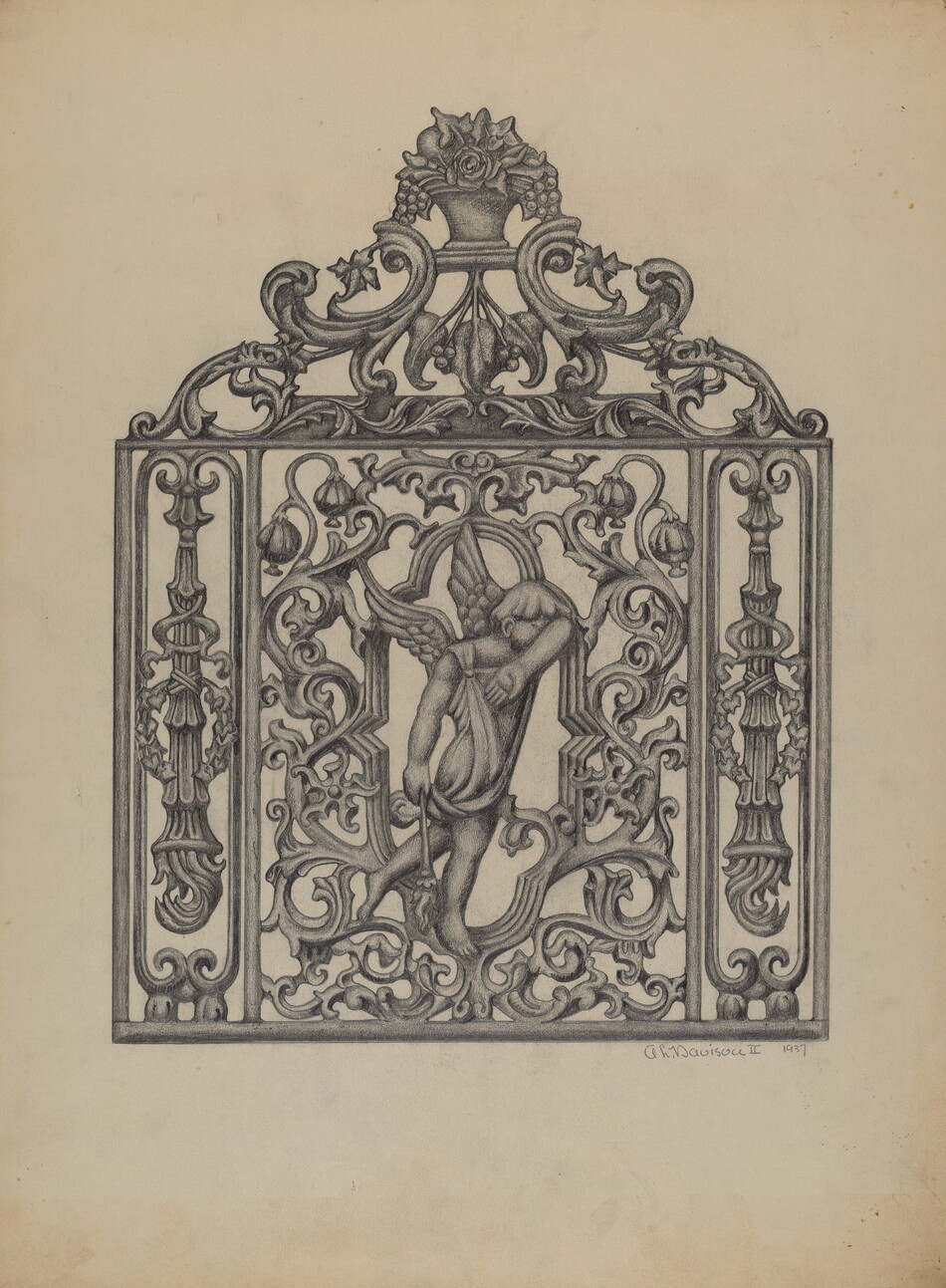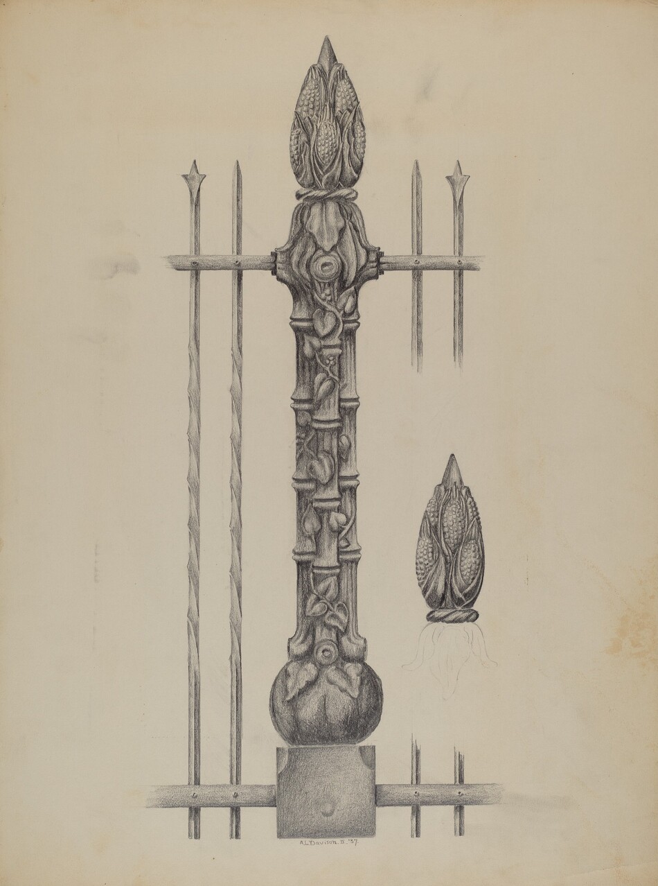 Austin L. Davison American, 1909 - 1992 Displaying 25 - 36 of 47 Results Artwork Cast Iron Eagle Cast Iron Eagle Austin L. Davison c. 1937 Graphite and colored pencil on paperboard Accession ID 1943.8.9803 Not on view Download artwork Artwork Fence Fence Austin L. Davison 1937 Graphite on paperboard Accession ID 1943.8.11771 Not on view Download artwork Artwork Standard from Iron Fence Standard from Iron Fence Austin L. Davison 1937 Graphite on paperboard Accession ID 1943.8.11759 Not on view Download artwork Artwork Foot Scraper Foot Scraper Austin L. Davison 1937 Graphite on paperboard Accession ID 1943.8.11795 Not on view Download artwork Artwork Window Grille Window Grille Austin L. Davison 1937 Graphite on paperboard Accession ID 1943.8.11766 Not on view Download artwork Artwork Window Grille Window Grille Austin L. Davison 1937 Graphite on paperboard Accession ID 1943.8.11773 Not on view Download artwork Artwork Cast Iron Window Grille Cast Iron Window Grille Austin L. Davison 1937 Graphite on paperboard Accession ID 1943.8.11790 Not on view Download artwork Artwork Pa. German Stove Plate Pa. German Stove Plate Austin L. Davison 1937 Graphite on paperboard Accession ID 1943.8.3651 Not on view Download artwork Artwork Cemetary Gate Cemetary Gate Austin L. Davison 1937 Graphite on paperboard Accession ID 1943.8.11789 Not on view Download artwork Artwork Gate for Cemetary Plot Gate for Cemetary Plot Austin L. Davison 1937 Graphite on paperboard Accession ID 1943.8.11792 Not on view Download artwork Artwork Bracket Bracket Austin L. Davison 1937 Graphite on paperboard Accession ID 1943.8.11802 Not on view Download artwork Artwork Window Grille Window Grille Austin L. Davison 1937 Graphite on paperboard Accession ID 1943.8.11770 Not on view Download artwork Pagination Previous page Page 1 Page 2 Current page 3 Page 4 Next page