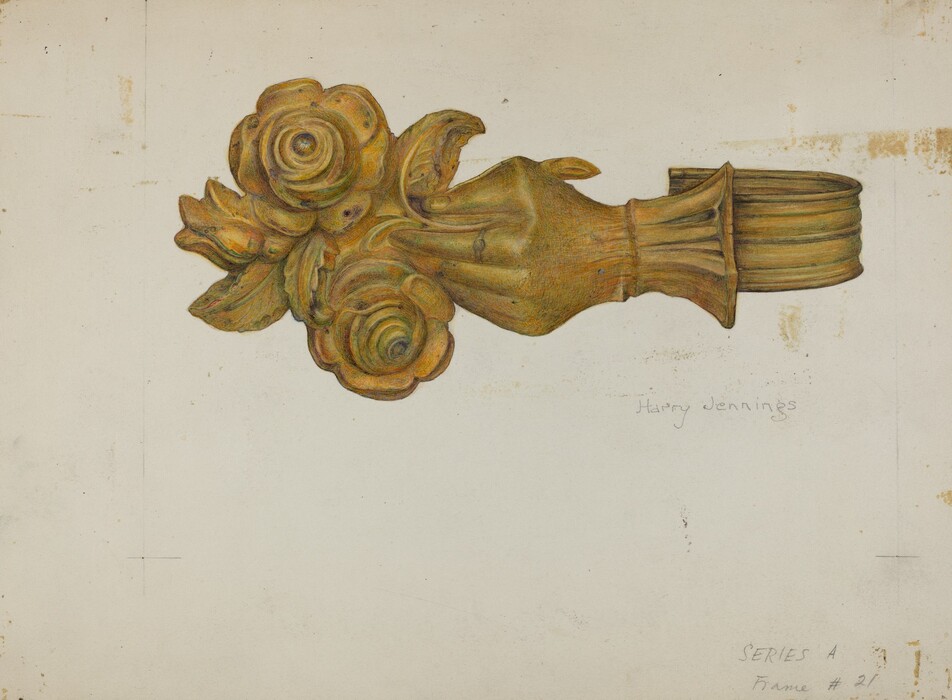 Harry Jennings, Mirror Support - Victory Head, c. 1941, watercolor, colored pencil, and graphite on paper, Index of American Design, 1943.8.5380