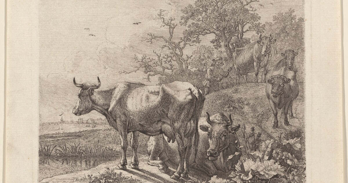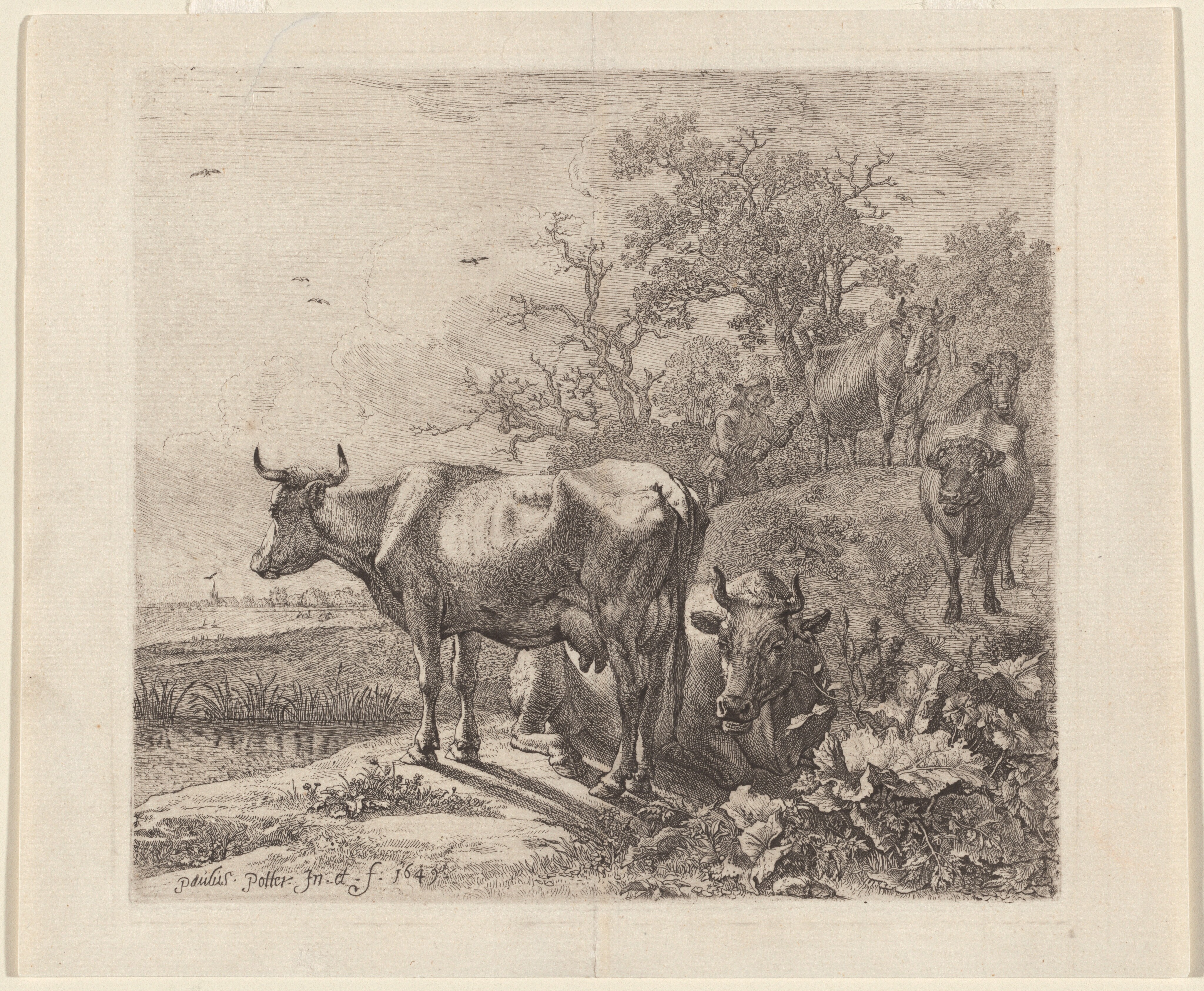 lower left in plate: Paulus Potter In et f. 1649; by later hand, upper left verso in graphite :The Herdsman