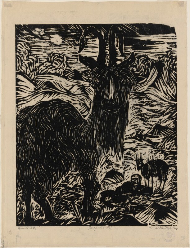 signed and titled below image, in graphite: Handdruck "Ziegenbock" Philip Bauknecht; at lower left margin, in graphite, by later hand: 9.); stamped on verso, in blue: KIR (...) HIVATAL BUDAPEST 23