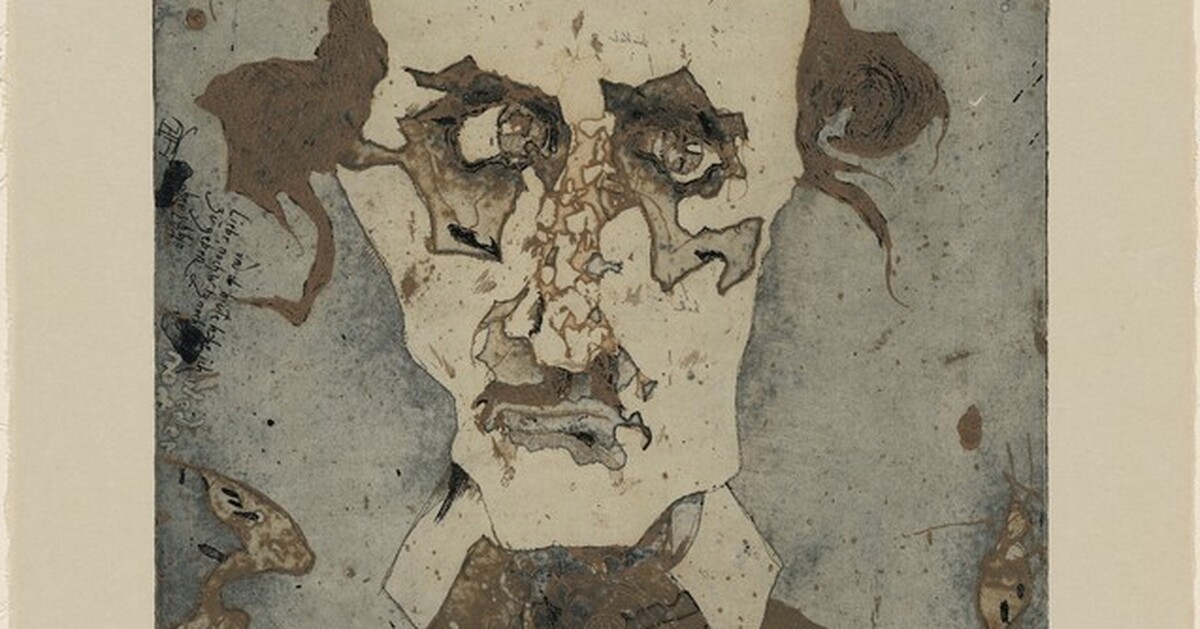 printed from two plates; brown plate: soft ground etching, etching and stop-out; blue plate: etching, open-bite and soft-ground etching; on light green paper
