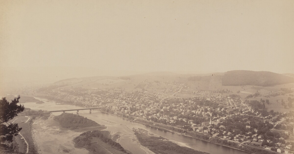 bottom left, in typeset lettering printed though negative: 617 TOWANDA FROM TABLE ROCK. L.V.R.R.; bottom right: WILLIAM H. RAU, PHILA.