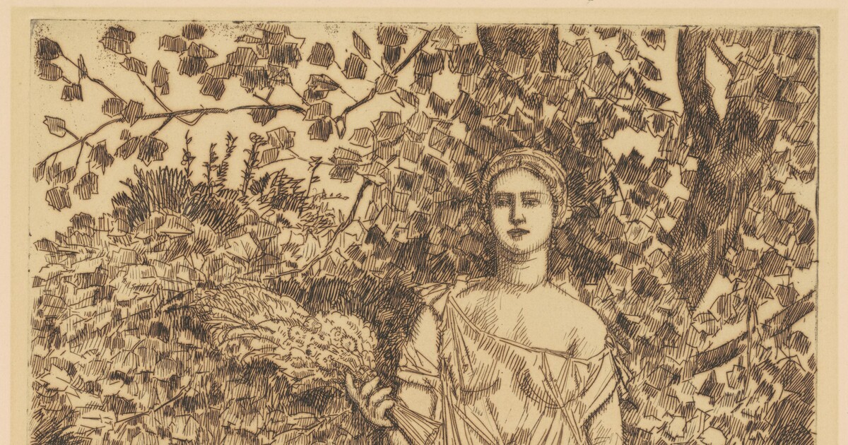 lower right in plate: Aug 14th / [the artist's monogram] / 1929; lower right in graphite: [the artist's monogram] / imp; lower left edge in graphite by unknown hand: 10 Flora; lower center edge in graphite by unknown hand: 1117HA 17X69NA [crossed out]; upper left verso in graphite by unknown hand: #13