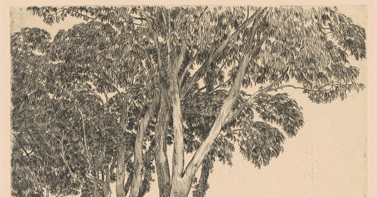 lower right in plate: Cornado / March. 8th 18th / [the artist's monogram] / 1927; lower right in graphite: [the artist's monogram] imp; upper left in graphite by unknown hand: 275; lower left in graphite by uknown hand: Eucalyptus Trees 75; lower left verso in graphite by unknown hand: B.25520.; lower right verso in graphite by unkonwn hand: NO