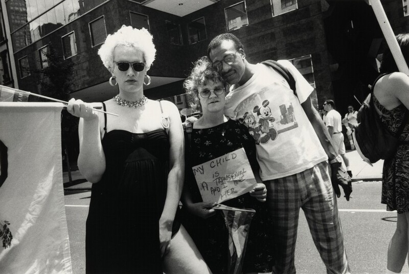 on verso, signed by artist, center in black ink: 1994 NYC; by artist, lower right in black ink: Mariette Pathy Allen; center stamped in black ink: (c) MARIETTE PATHY ALLEN; by unknown hand, center in black ink: "my child is a transexual and I love her" / Gay Pride Parade