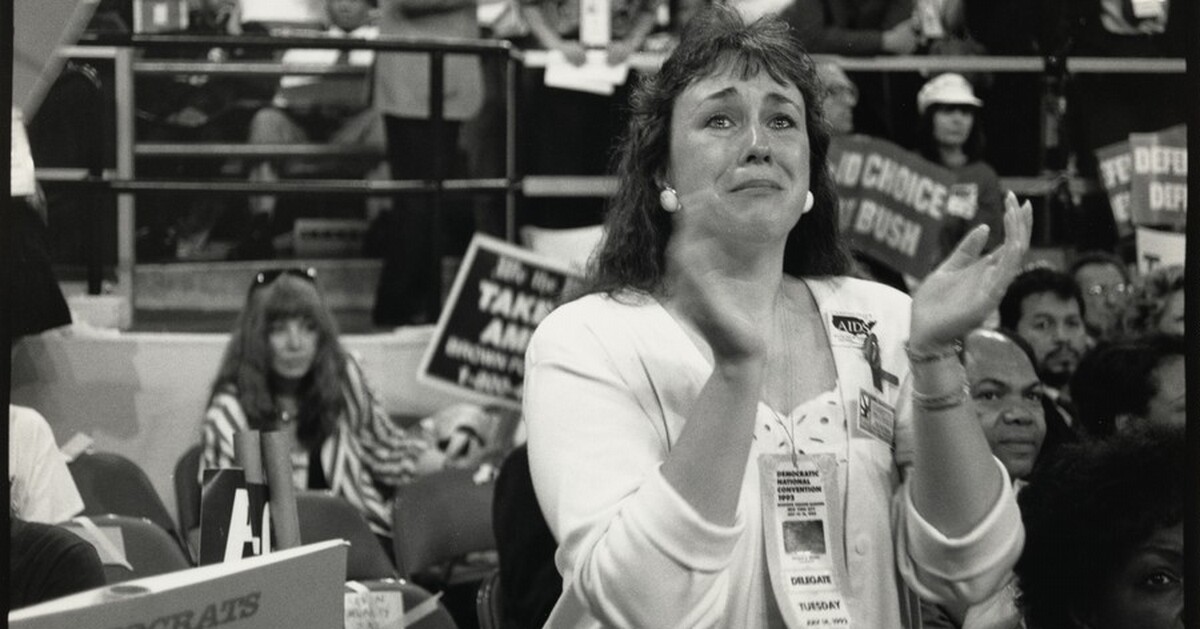 on verso, signed by artist, bottom right in black ink: 1992 Democratic / National Convention / Clinton + W.H. Bush contest / Madison Square Garden / NYC / Mariette Pathy Allen