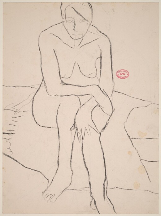 Untitled [seated female nude leaning left on her crossed arms] [recto]