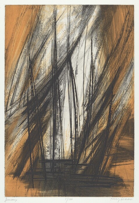 Terry Haass · 1964 · etching, engraving, scraping, and aquatint in orange and black · Accession ID 1980.45.754