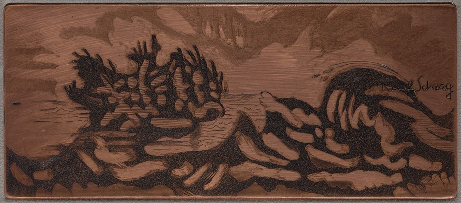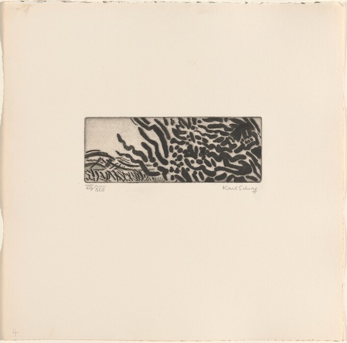 Karl Schrag · 1965/1966 · etched, engraved, aquatinted, and cancelled copper plate from a portfolio of six etchings and aquatints; four etching, engraving, and aquatints; four etchings; two etching and engravings; one etching, aquatint, and stencil; one engraving; and one cancelled copper plate · Accession ID 1968.24.109.19