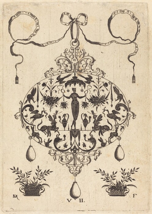 Large Pendant, Flora Standing, Holding a Fruit Garland